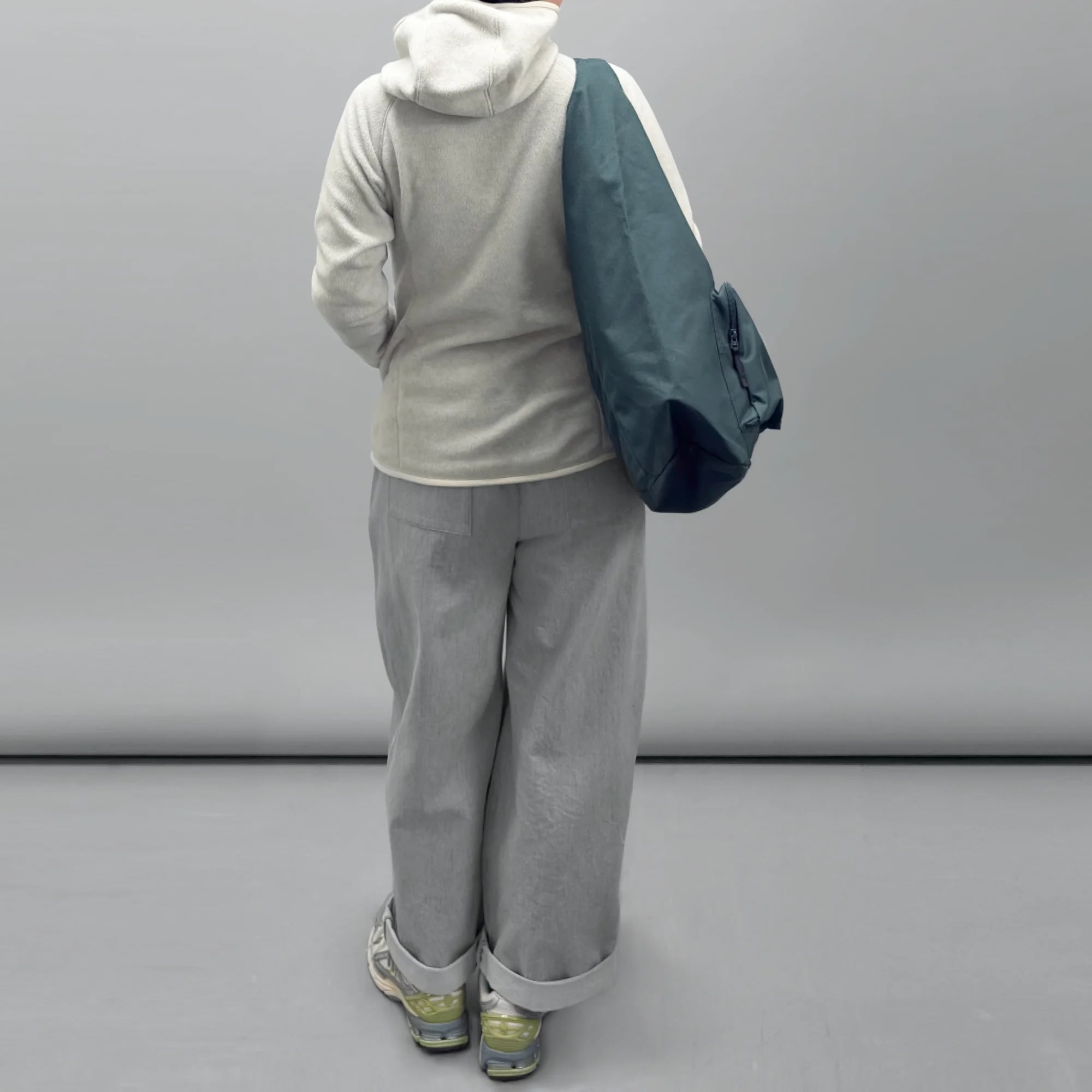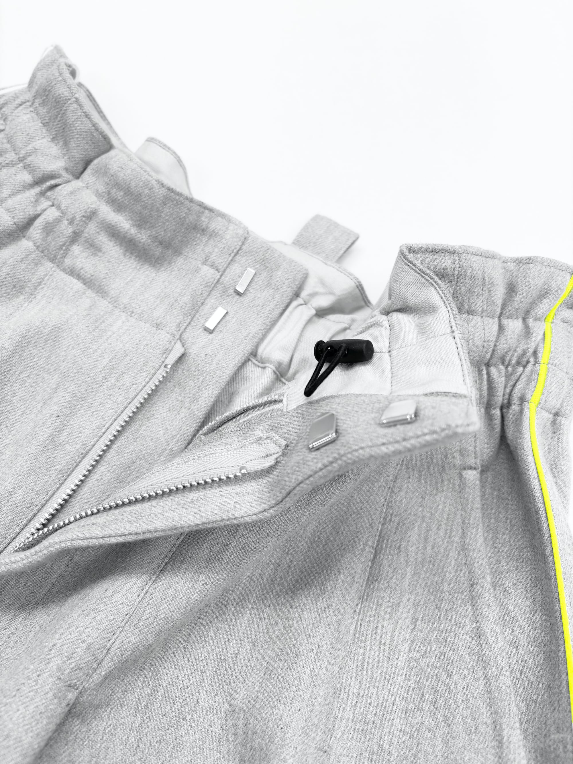 ライトグレー コクーンワイドパンツ ネオンイエローライン PT-2_GY